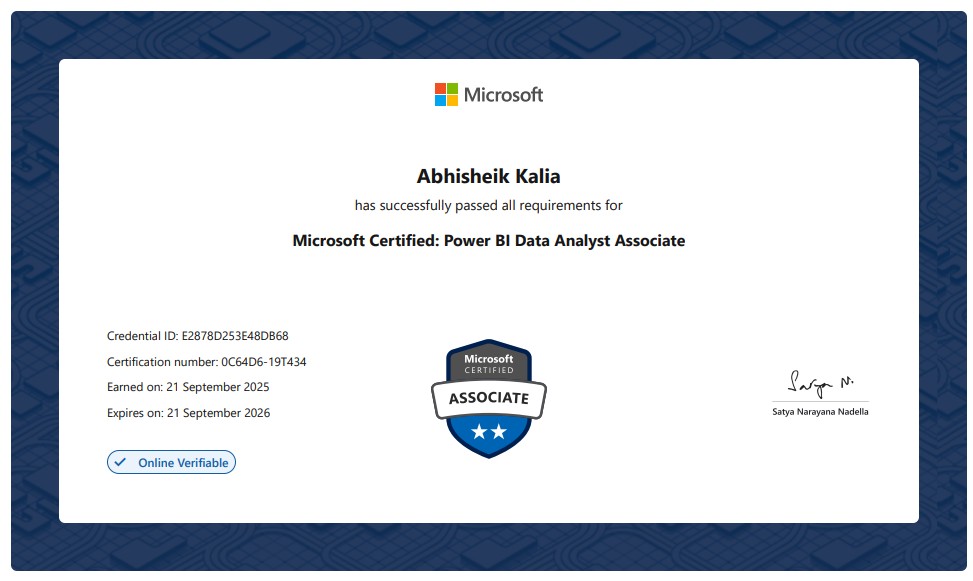 Abhisheik Kalia - Business Intelligence Professional